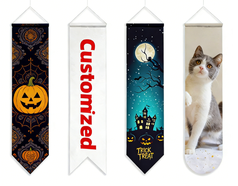 Premium Material & Vivid, Long-Lasting Printing: High-quality polyester ensures wrinkle resistance, easy cleaning, and durability for repeated seasonal use.Advanced digital printing & heat transfer sublimation deliver bright, vibrant colors that won’t fade after washing or outdoor exposure.Comes with built-in string and PVC rod for quick installation – hassle-free for end-users decorating for holidays.
