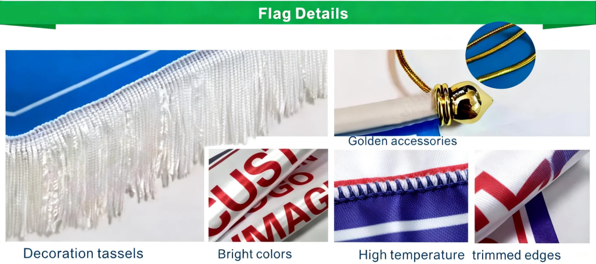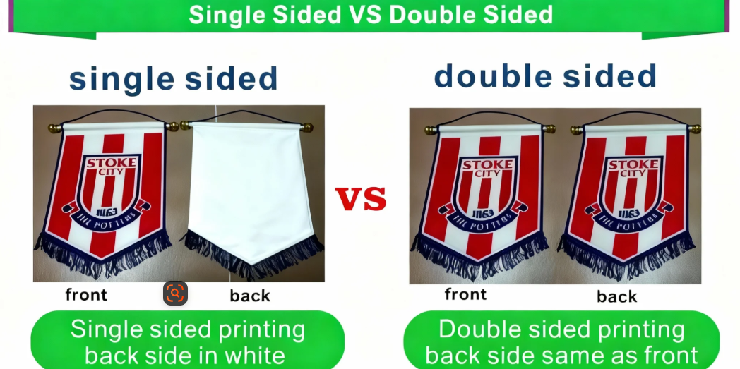 - Custom hanging flag with high-quality digital printing for vibrant 2-color graphics.
