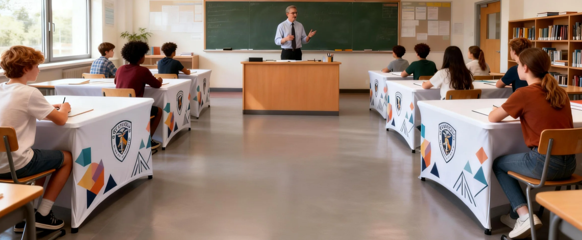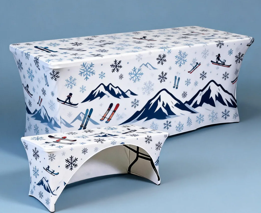 Factory Custom Printed Trade Show Advertising Stretch Rectangular Table Cloth Spandex Table Cover Customized 100% Polyester RJ